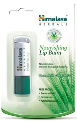 Lippenbalsam mit Kräuterzusammensetzung enthält Extrakte aus Wirkstoffen aus Karotte, Kokosnuss, Weizen, süßem Indraj und Kakaobutter.
