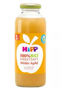Gepresster Apfelsaft aus erntefrischen BIO-Äpfeln, mit Vitamin C. Für besondere Ernährungszwecke für Säuglinge und Kinder.