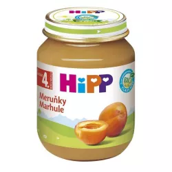 Fruchthaltige Nahrung (Aprikosen), geeignet für Kinder ab 4 Monaten (sofern unabhängige Personen mit medizinischer oder pharmazeutischer Qualifikation oder mit Qualifikationen im Bereich Ernährung nichts anderes empfehlen). Entwickelt für eine spezielle Ernährung.