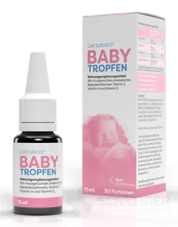 Nahrungsergänzungsmittel mit ausgewählten Bakterienstämmen von Laktobazillen, Bifidobakterien und den Vitaminen A, D3, E. Geeignet für Kinder ab der Geburt zur Unterstützung der Verdauung.