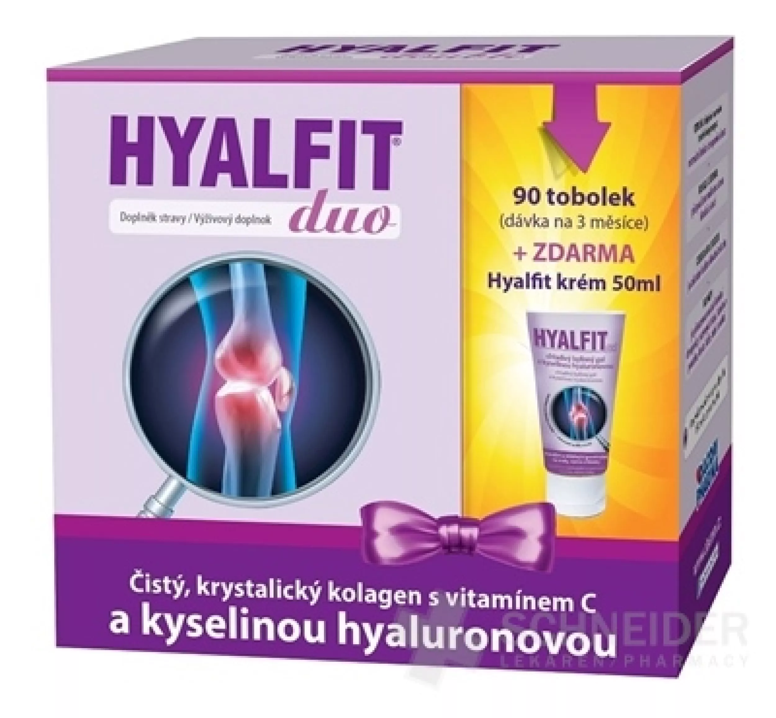Nahrungsergänzungsmittel Hyalfit-Kapseln mit reinem kristallinem Kollagen, Hyaluronsäure, Vitamin C und Boswellia.