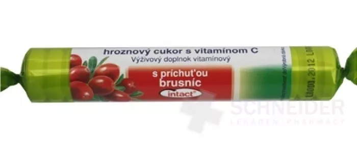 Nahrungsergänzungsmittel, Bonbons (Pastillen) mit Traubenzucker und Vitamin C mit Cranberry-Geschmack in einer Rolle verpackt.