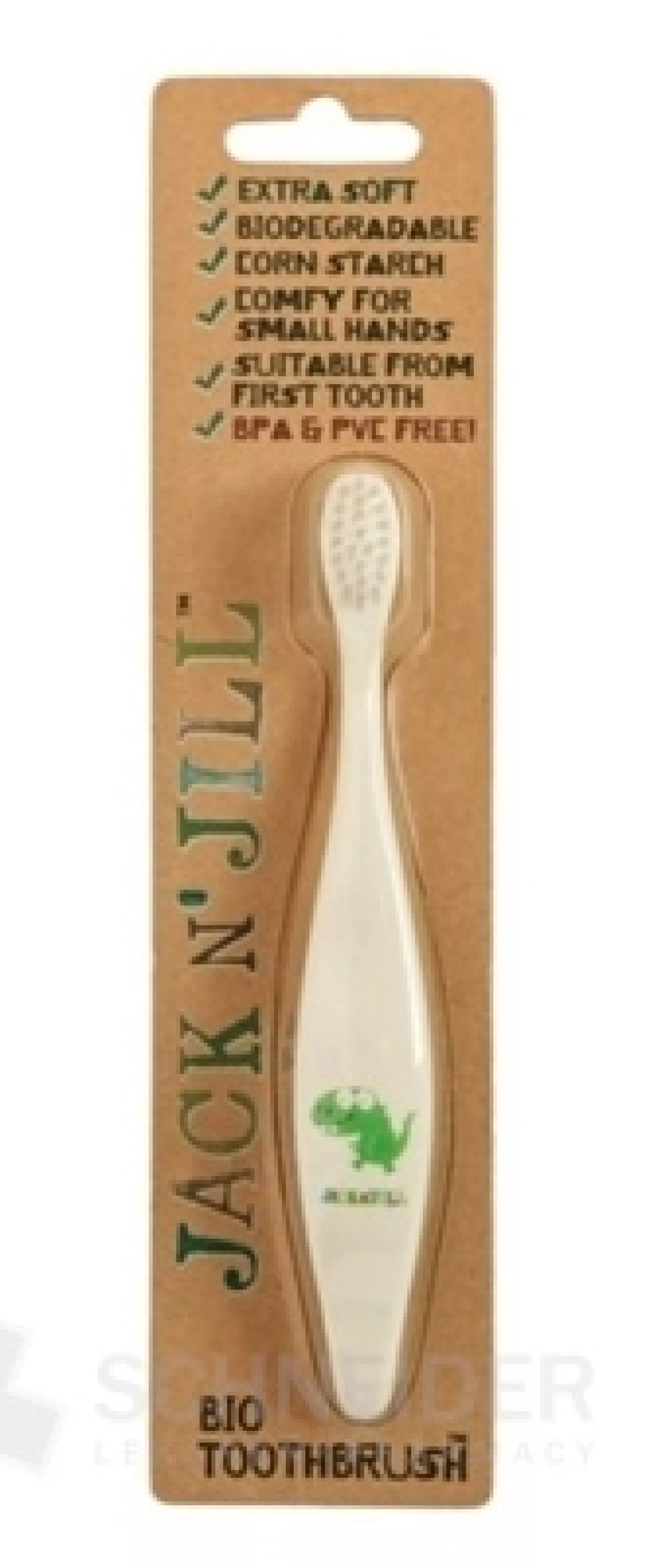 - Sowohl die Bürste als auch die Verpackung sind biologisch abbaubar (der Karton besteht aus recycelbarem Papier und das Fenster besteht zu 100 % aus Maisstärke),