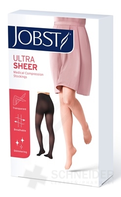 Stilvolle Kompressionsstrumpfhose für Damen. Sie sind transparent, haben eine glänzende Oberfläche und verleihen Ihren Füßen ein schönes Aussehen. Kompressionsklasse I. Mit geschlossener Spitze, in schwarzer Farbe.