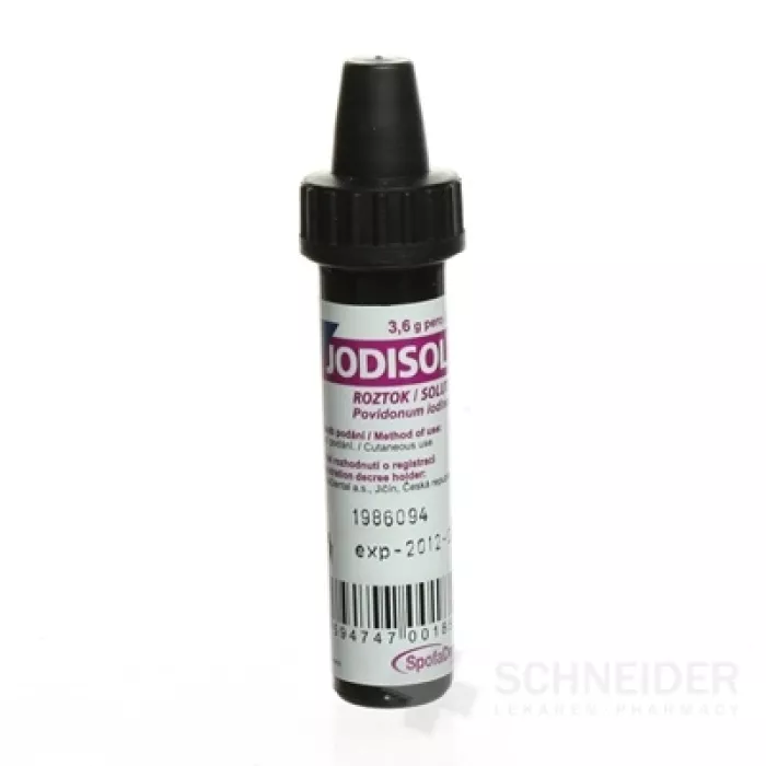 Zur Händedesinfektion, Flächendesinfektion der Haut vor kleineren Eingriffen (Injektionen, Punktionen etc.), zur Vorbereitung des Operationsfeldes, Desinfektion oberflächlicher Hautwunden, Risse, Lappen, antiseptische Behandlung von leichten Verbrennungen, Druckgeschwüren, Infekten, bakterielle und pilzbedingte Dermatitis, Herpes labialis, aphthöse Stomatitis, Dentitio difficilis, chronische Mandelentzündung und Zustände nach Tonsillektomie. In der Zahnprothetik empfiehlt es sich, JodisolŇ zur Desinfektion von Abdrücken durch Eintauchen in eine verdünnte Lösung von Jodisol (1:10) zu verwenden.
