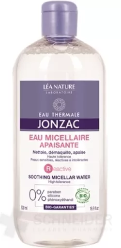 Kosmetische Vorbereitung. Mizellenwasser für empfindliche, zu Rötungen neigende Haut. Das Präparat enthält 15 % Jonzac-Thermalwasser, Kamille und Bisabolol. Reinigt sanft Gesicht und Augen. Auch für Veganer geeignet. Nicht an Tieren getestet.