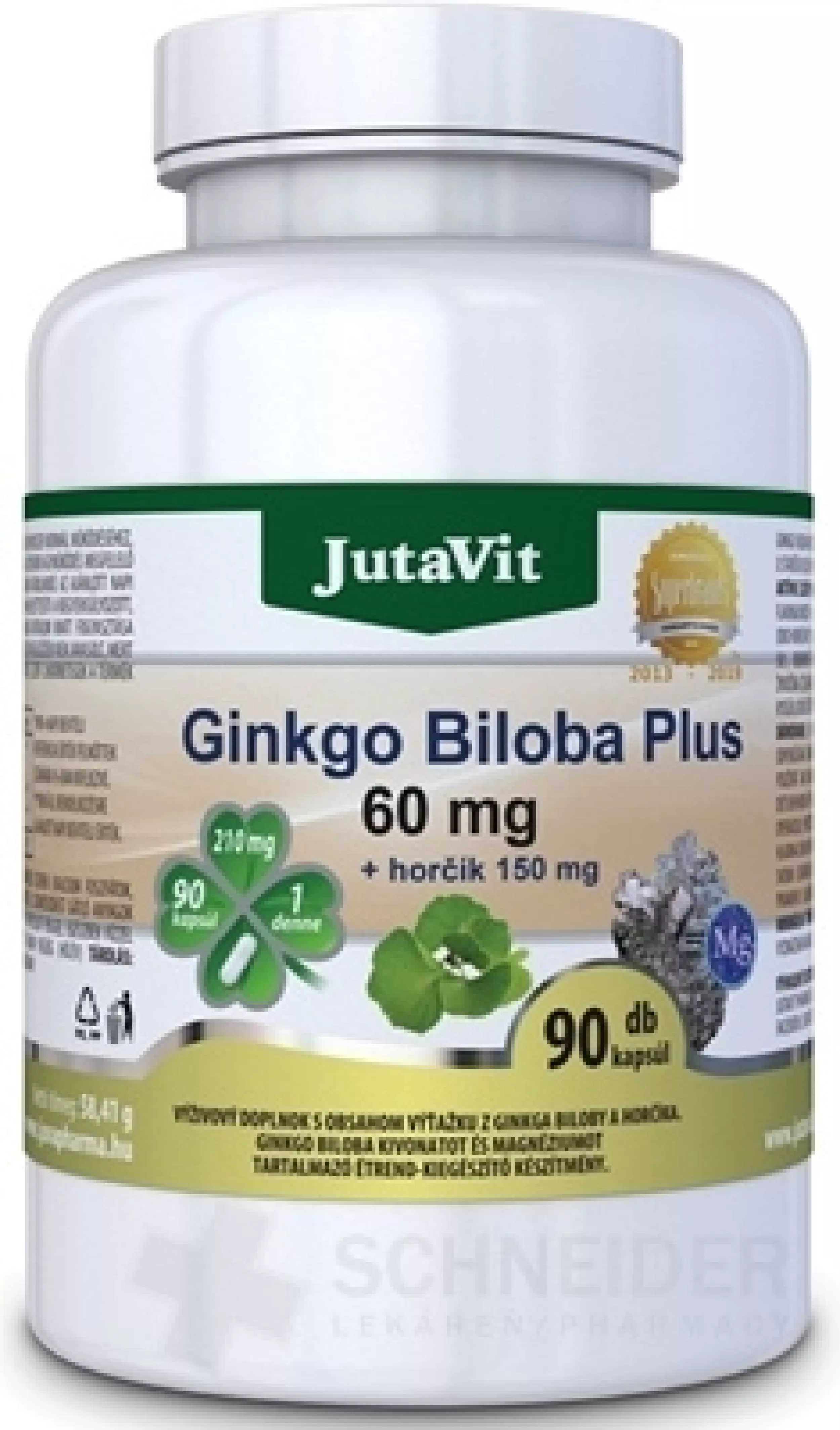 Zusammensetzung: Magnesium - Magnesiumoxid 150 mg, Ginkgo-Biloba-Extrakt 50:1 Blatt (60 mg, davon Ginkgo-Flavonglykoside - 14,4 mg, Terpenolacton (Ginkgolide und Bilobalid) - 3,6 mg, Füllstoffe: (Calciumphosphat, mikrokristalline Cellulose), tierische Gelatine (Rind), Trennmittel: (Magnesiumsalze der Speisefettsäuren, Kieselsäure)