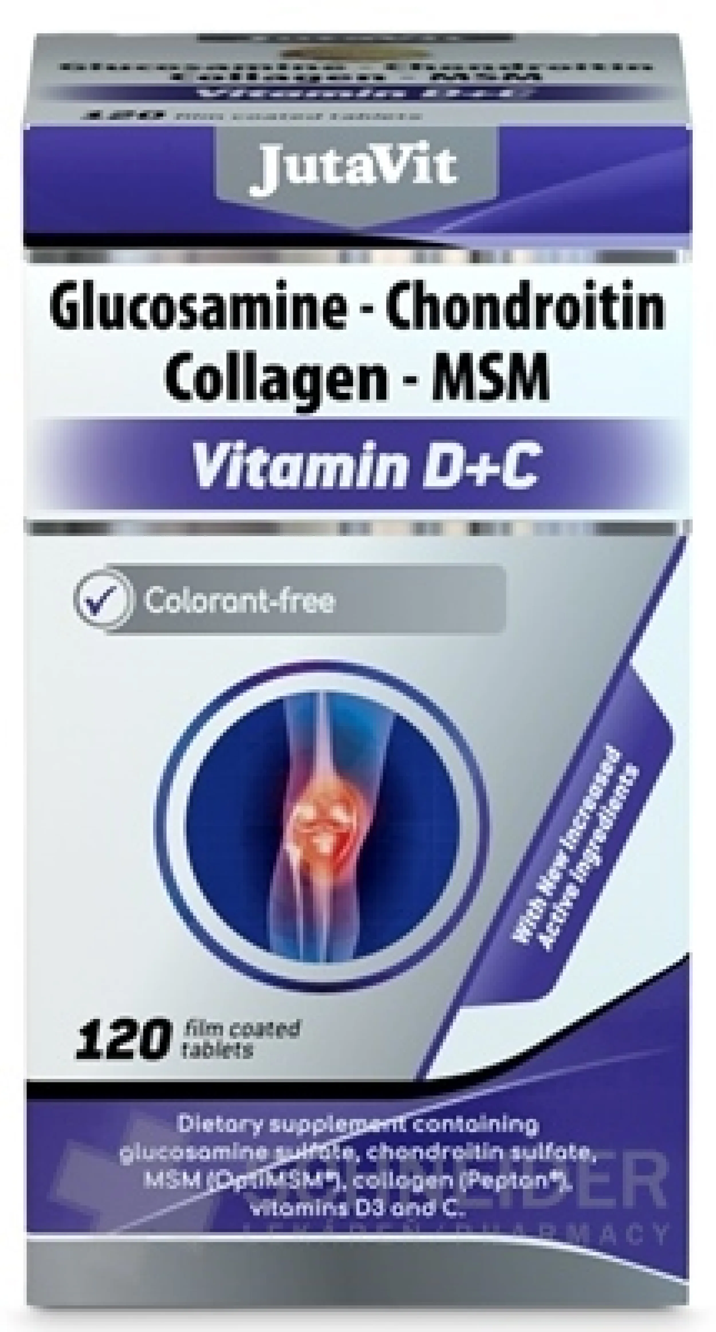 Nahrungsergänzungsmittel mit Glucosamin, Chondroitin, Kollagen (Peptan®), MSM (OptiMSM®) sowie den Vitaminen D und C.