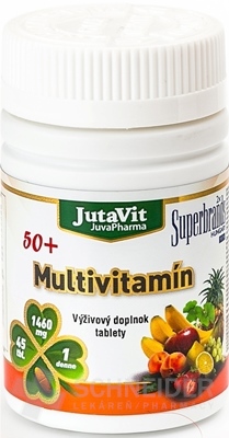 Nahrungsergänzungsmittel JutaVit Multivitamin 50+ mit Vitaminen und Mineralstoffen, Lactobacillus rhamnosus, Ginkgo-biloba-Extrakt, Lutein, Lycopin.