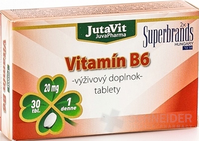 Nahrungsergänzungsmittel JutaVit Vitamin B6 mit Vitamin B6-Gehalt.