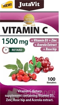 Nahrungsergänzungsmittel mit Vitamin C, Vitamin D3, Zink, Pfeilwurz und Acerola-Extrakt in Form von Tabletten mit langsamer Freisetzung.