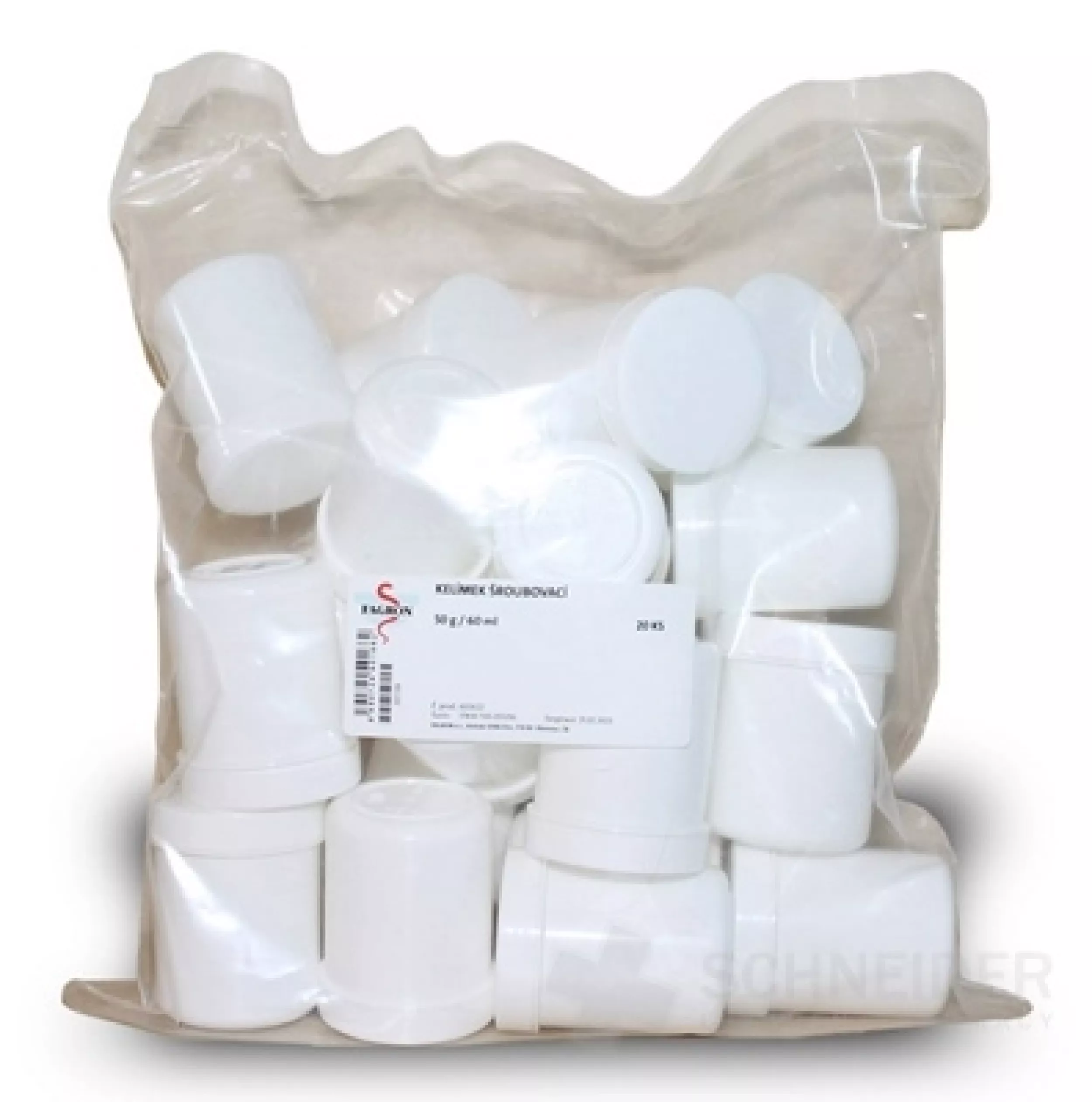 Plastikbecher mit Schraubverschluss, Verpackungsmaterial.