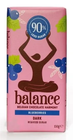 Zutaten: Kakaomasse, Ballaststoffe (Inulin), Süßungsmittel (Maltit, Steviolglykoside), Kakaobutter, Blaubeeren (4 %), Emulgator (Sojalecithin), natürliches Vanille- und Blaubeeraroma. Kann Spuren von Milch, Mandeln, Haselnüssen, Pistazien und Walnüssen enthalten.