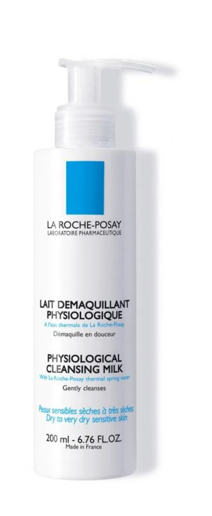 La Roche-Posay Lait demaquillant physiologique, physiologische Abschminkmilch mit Thermalwasser aus La Rache-Posay, reinigt und entfernt sanft Make-up von trockener und sehr trockener, empfindlicher Haut. Die Milch hat eine reichhaltige und cremige Textur, entfernt sogar wasserfestes Make-up, respektiert den physiologischen pH-Wert und ist frei von Seife, Farbstoffen, Alkohol und Parabenen
