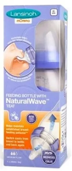 Die Lansinoh Babyflasche 1x240 ml unterstützt das Saugen des Babys durch die peristaltische Bewegung der Zunge, hilft dabei, die erlernte Art des Saugens eines gestillten Babys beizubehalten und ermöglicht einen einfachen Übergang zwischen Stillen und Zufüttern.