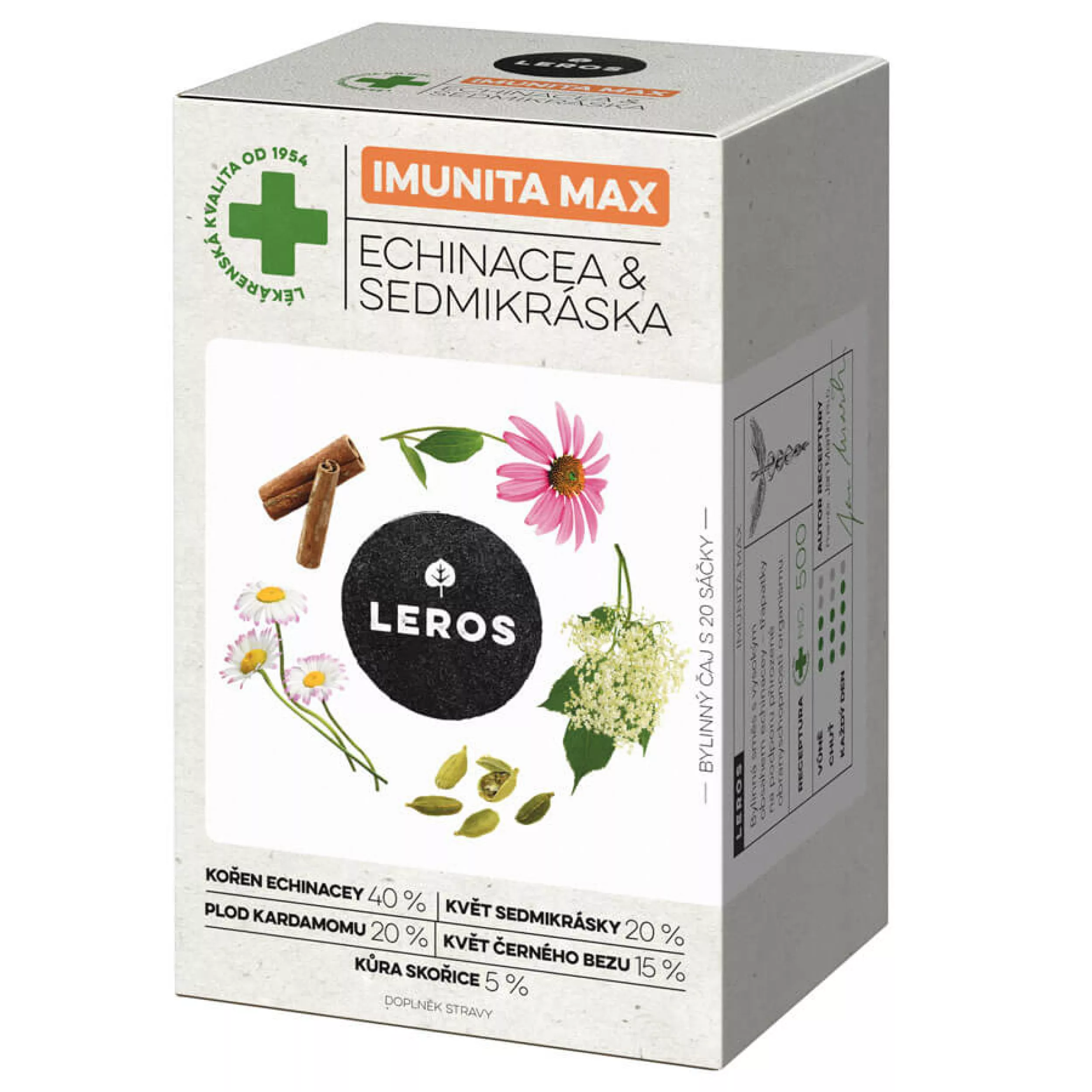 Zutaten: Echinacea-Wurzel, Gänseblümchenblüte, Kardamomfrucht, schwarze Holunderblüte, Zimtrinde.