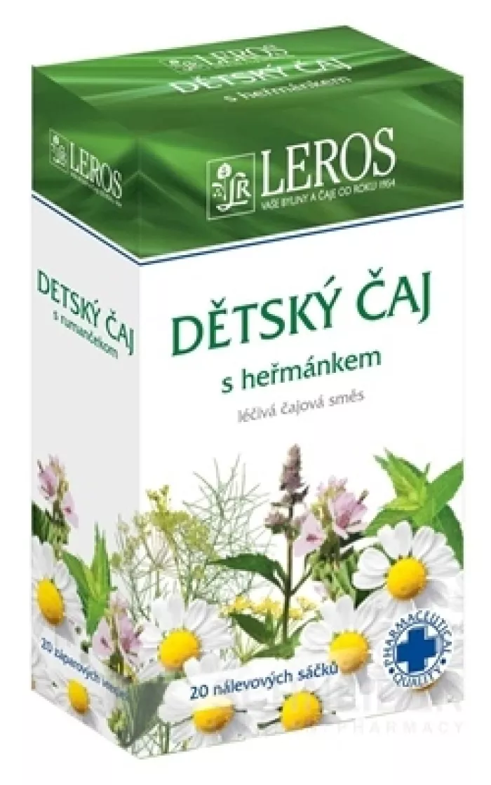 Kräutertee für Kinder enthält Matricariae flos (Kamillenblüte), Foeniculi fructus (Fenchelfrucht), Menthae piperitae herba (Pfefferminze), Althaeae radix (Hibiskuswurzel), Rubi idaei folium (Himbeerblatt), Plantaginis folium (frühes Sellerieblatt),