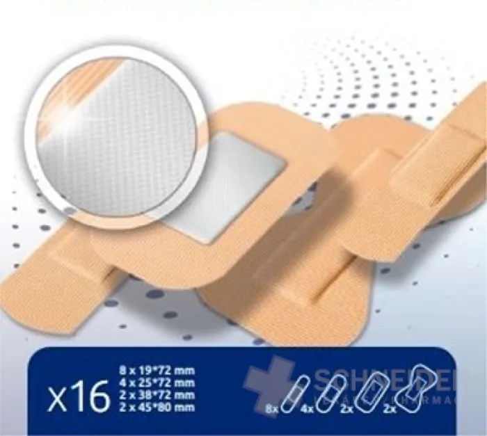 Pflaster für kleinere Verletzungen mit antibakteriellem Silber. Wasserdicht, atmungsaktiv, hypoallergen. In der Packung 4 verschiedene Größen: 8 Stück 19x72 mm, 4 Stück 25x72 mm, 2 Stück 38x72 mm, 2 Stück 45x80 mm.