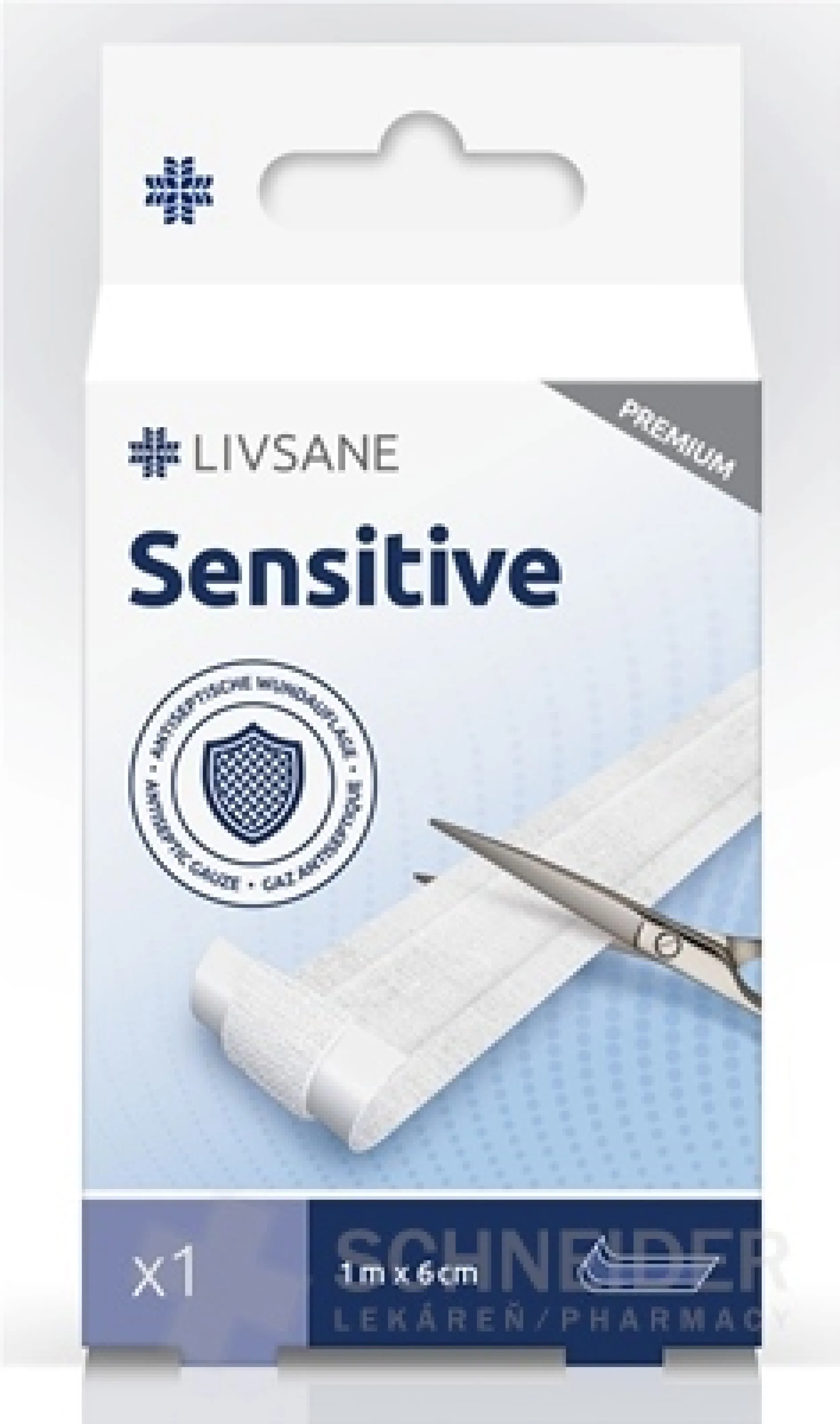 Pflaster für empfindliche Haut mit den Maßen 1m x 6 cm. Geeignet zum Schneiden.