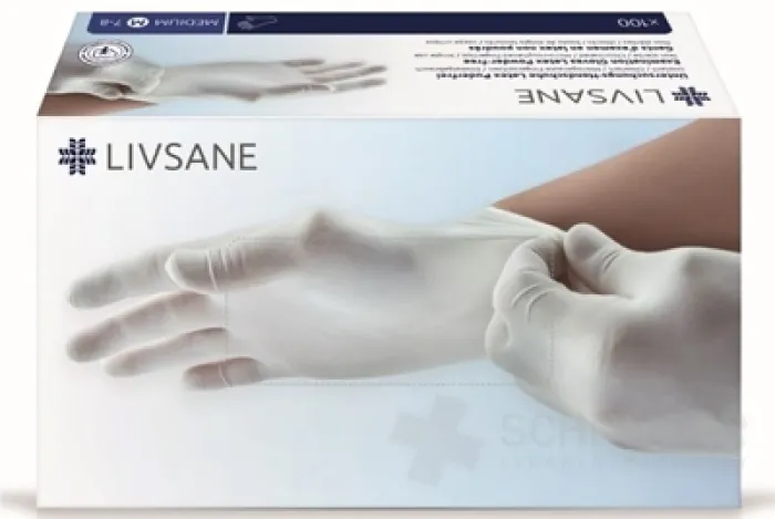 Medizinische Einweg-Untersuchungshandschuhe aus Latex. Unsteril, nicht pulverisiert. Farbe: natürlich. Länge: 240 mm ± 10 mm. Für Rechts- und Linkshänder geeignet.