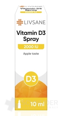Nahrungsergänzungsmittel, Vitamin D3 Spray 2000 IE. Der Packungsinhalt beträgt 10 ml (100 Injektionen).
