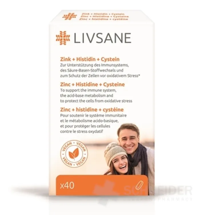 Nahrungsergänzungsmittel mit Zink und den Aminosäuren Histidin und Cystein. Das Produkt ist für Vegetarier und Veganer geeignet. Glutenfrei und laktosefrei.