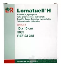 LOMATUELL H – gebrauchsfertiger Netztüll, imprägniert mit weißer Vaseline zur schonenden Behandlung oberflächlicher Wunden. Der Tüll mit großen Maschen unterstützt den Abfluss von Exsudat. Weiße Vaseline verhindert das Verkleben mit der Wunde. Somit ist ein schmerzloser Austausch des Bezuges möglich. Die neutrale Salbengrundlage bietet die Möglichkeit einer wundspezifischen Zusatzmedikation.