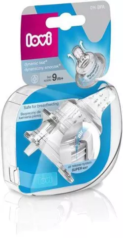 Lovi dynamischer Schnuller für Babyflasche. Der Schnuller ist für Kinder ab 9 Monaten geeignet.