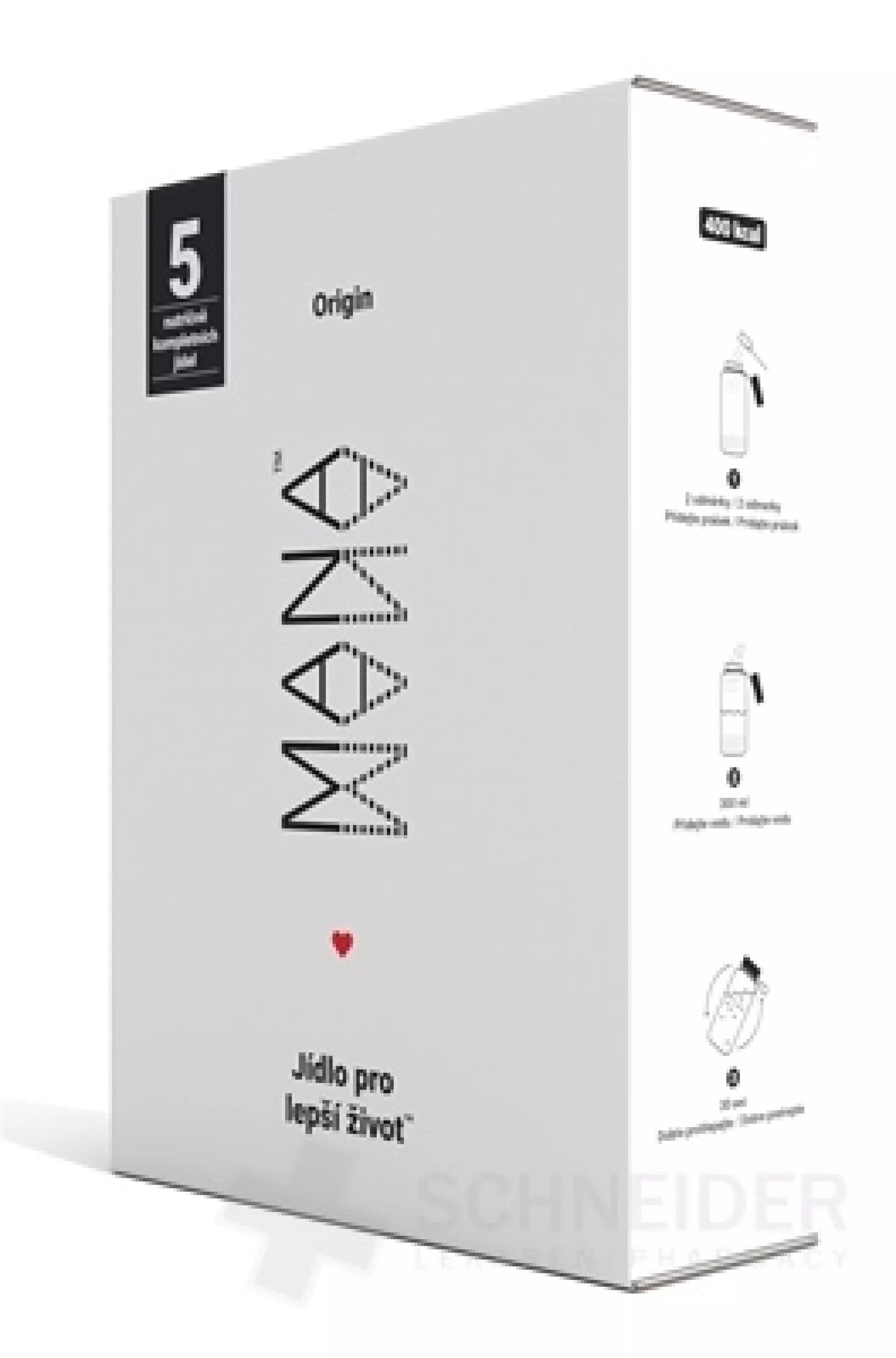 Pulver zur Zubereitung eines Getränks (vollwertiges Lebensmittel), das Proteine, Vitamine und Mineralstoffe, Zucker und Süßungsmittel enthält. Ein Beutel Mana-Pulver enthält 2001 kcal in 5 Portionen (86 g = 2 Messlöffel).