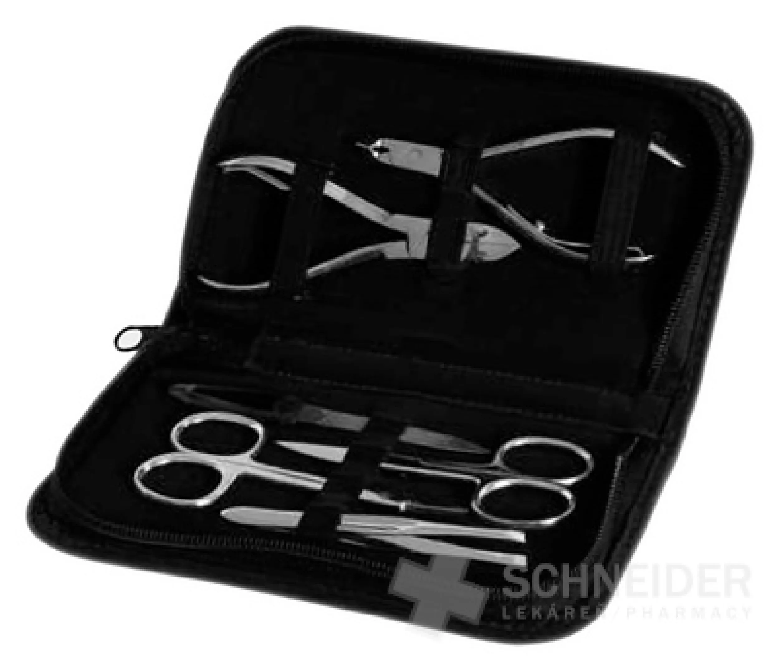 Das Maniküre-Set zur Behandlung und Vorbereitung der Nägel umfasst: gebogene Nagelschere, gebogene Hautschere,...