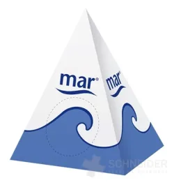 Die Box in Pyramidenform enthält 50 Stück 2-lagige Papiertaschentücher im Format 15x20 cm.