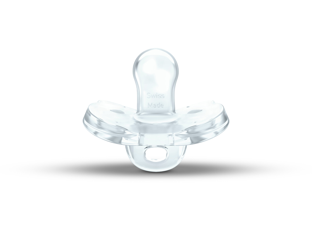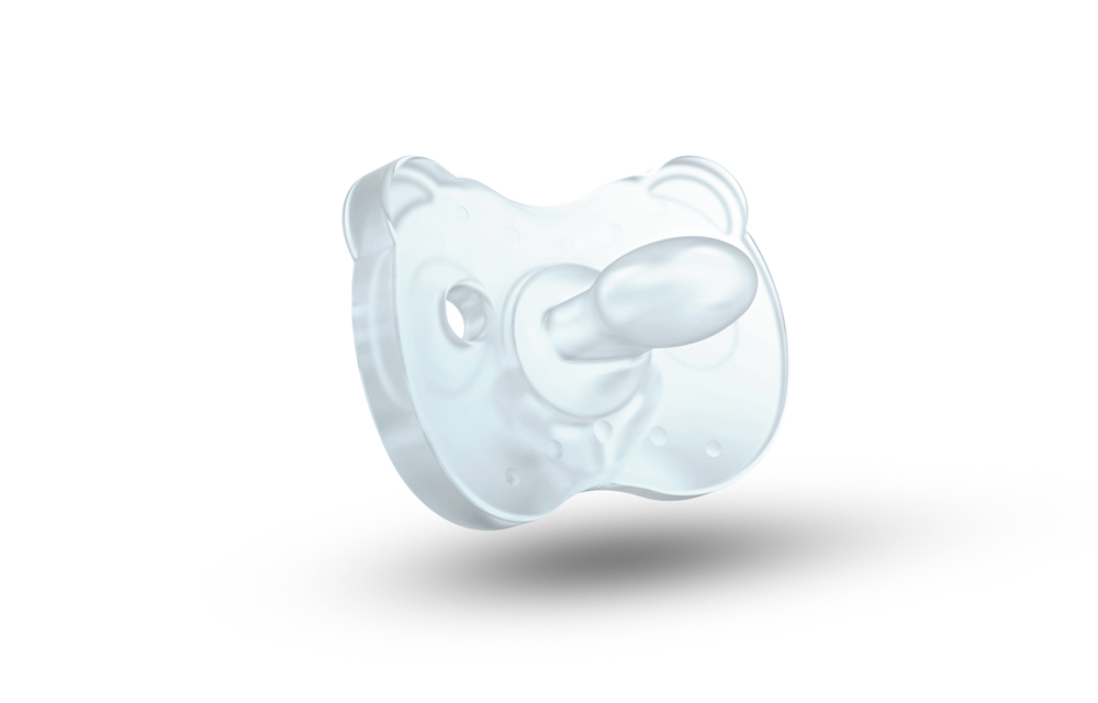 Ein weicher Schnuller aus Silikon, der das natürliche Saugen des Babys unterstützt. Leicht und kieferorthopädisch.