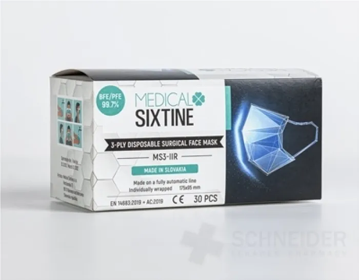 Einweg-Mundmaske mit drei Schichten. Verpackung à 30 Stück.