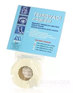 - das Taping-Pflaster sorgt für erhöhte Kraft und Vorbeugung bei übermäßiger Belastung von Gelenken, Sehnen, Muskelansätzen, Fixierung des Bewegungsapparates (Finger, Sprunggelenk, Kniegelenk, Achillessehne)