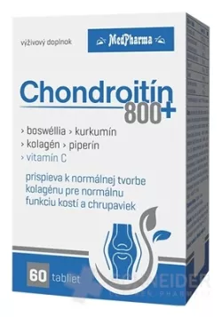 Nahrungsergänzungsmittel mit Chondroitinsulfat (800 mg in 1 Tablette), Boswellia, Curcumin, Kollagen (10 mg in 1 Tablette), Piperin und Vitamin C (20 mg in 1 Tablette).