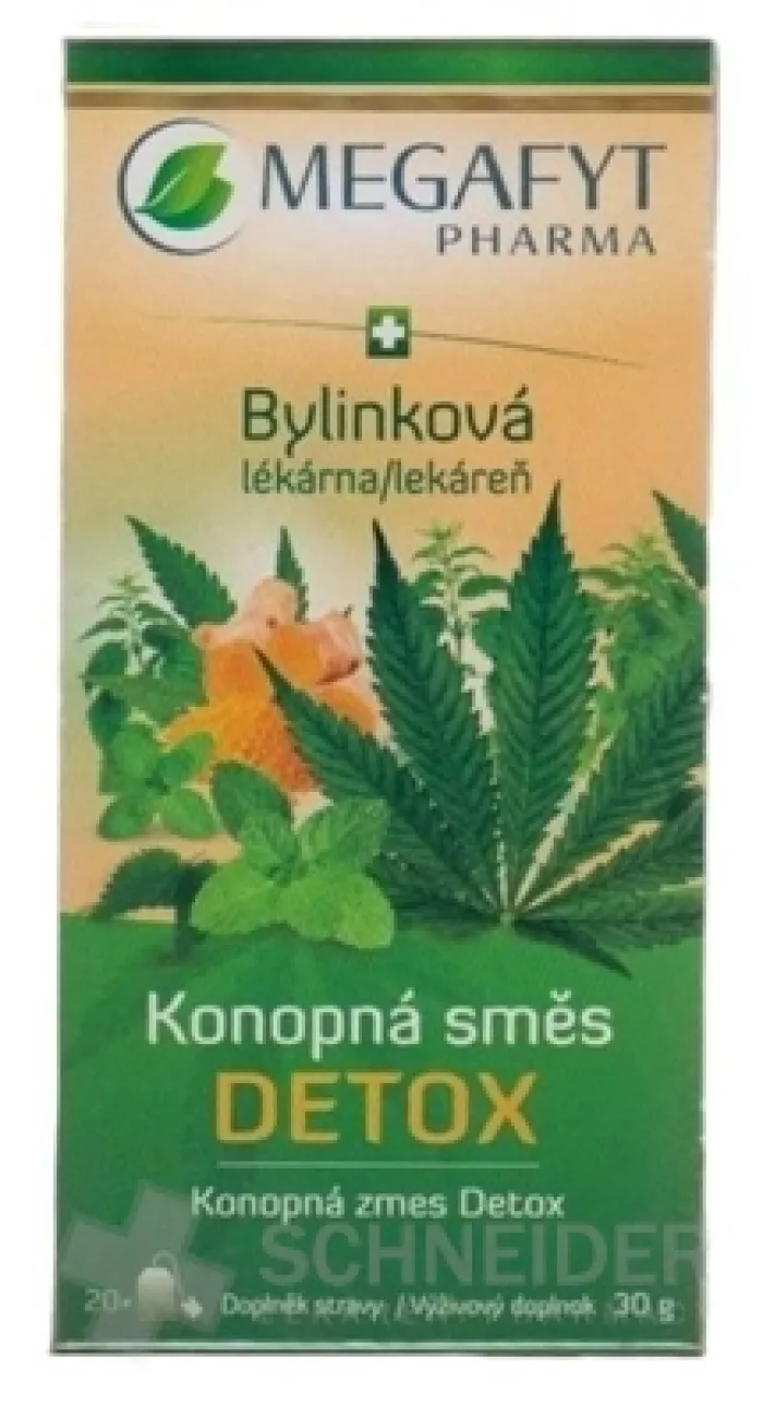 Eine Kräutermischung zur Zubereitung eines Getränks (Tee). Zusammensetzung: Gesäter Hanf, Blatt; Pfefferminze, Blatt; Brennnessel, Blatt; Kurkuma lang, Fenchel.