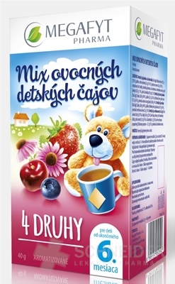 Früchtetees für Kinder im Aufgussbeutel, 4 Sorten in einer Packung. Geeignet als Ergänzungsgetränk zur Einhaltung des Trinkregimes von Kindern ab 6 Monaten. 4 Typen: