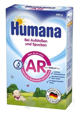 Humana AR ist ein diätetisches Lebensmittel auf Basis von Milchproteinen, das für die Ernährung von Säuglingen geeignet ist, die nach normaler Nahrungsaufnahme erbrechen. Humana AR kann ab der Geburt als einzige Säuglingsanfangsmilchnahrung oder zur Nahrungsergänzung beim Stillen mit Muttermilch verwendet werden.