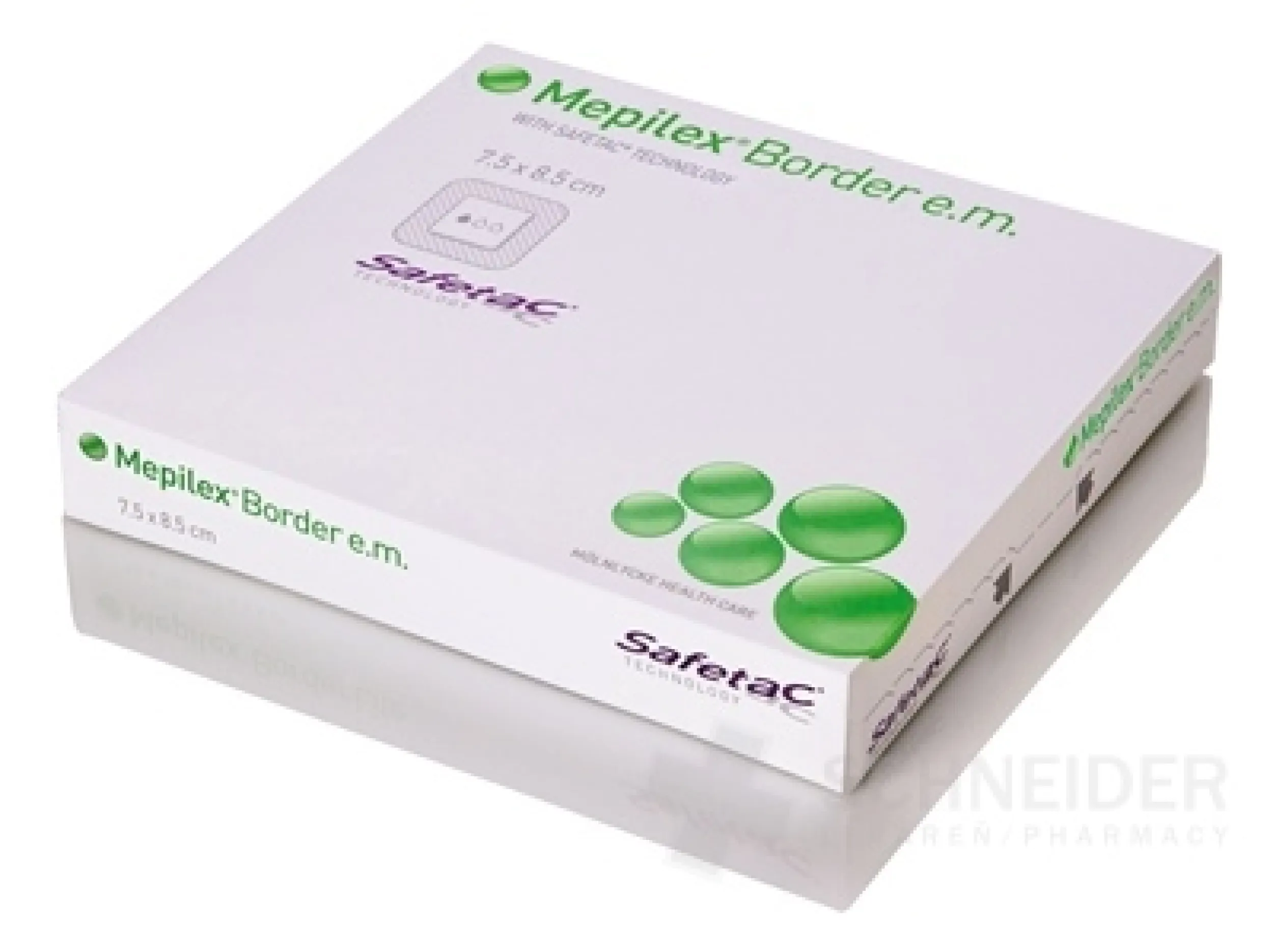 Mepilex Border EM ist ein dünner, äußerst anpassungsfähiger selbstklebender Verband, der Exsudat aus der Wunde aufnimmt, die Feuchtigkeit um die Wunde herum aufrechterhält und das Mazerationsrisiko minimiert. Mepilex Border EM wurde für die Behandlung eines breiten Spektrums nicht oder schlecht exsudierender Wunden entwickelt, wie z. B. Bein- und Fußgeschwüre, Druckgeschwüre und traumatische Wunden, z. B. Hautabschürfungen, Fingerverletzungen, Blasen und eingerissene Haut. Mepilex Border EM kann auch zum Schutz beschädigter und/oder rissiger Haut verwendet werden.