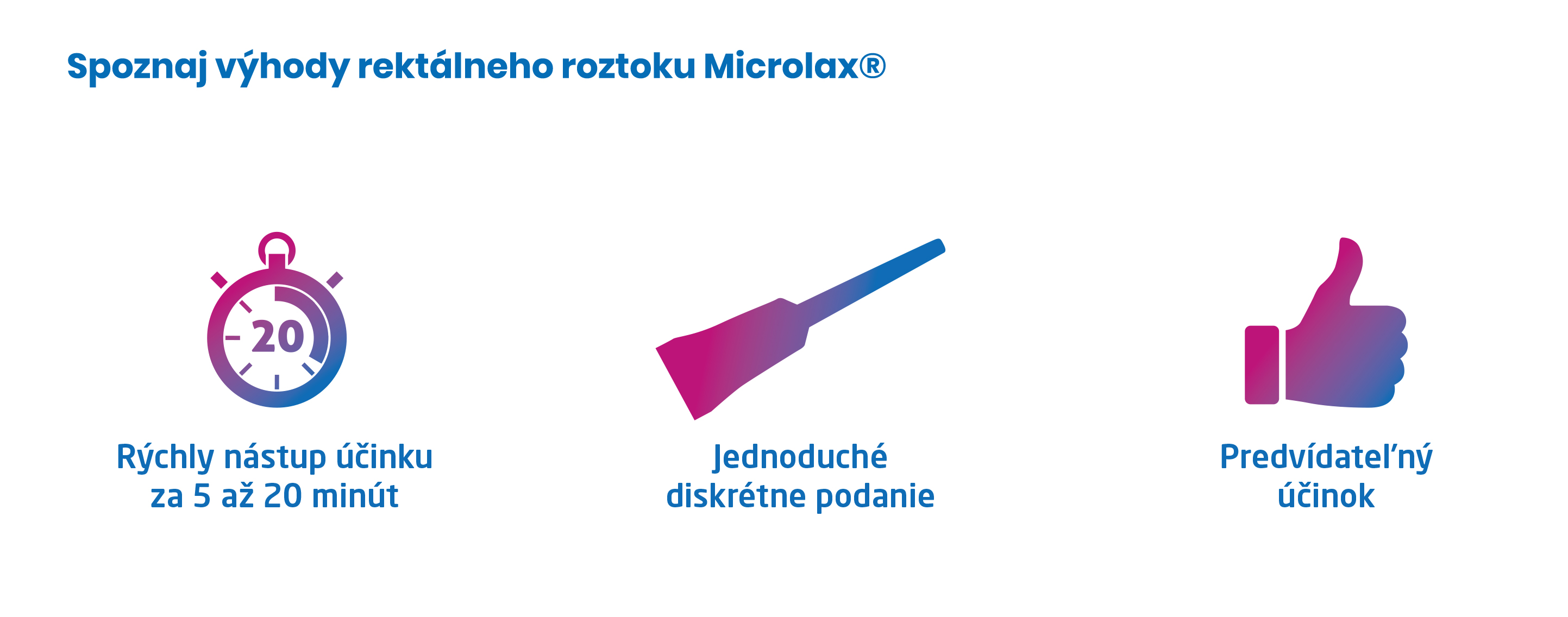 Microlax® – ein Medikament zur symptomatischen Behandlung gelegentlicher Verstopfung bei Erwachsenen. Dank des Wirkungseintritts innerhalb von 5 bis 20 Minuten lindert es Verstopfung schnell.