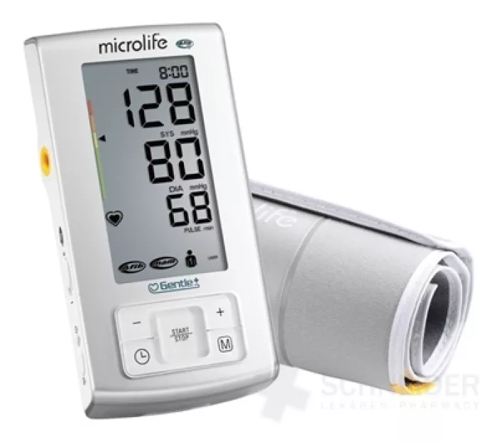 Vollautomatisches digitales Blutdruckmessgerät mit konischer Armmanschette für klinisch genaue Blutdruckmessung. Mit der patentierten AFIB-Funktion zur Früherkennung des Schlaganfallrisikos und der MAM-Funktion zur automatischen 3-fach-Wiederholungsmessung. Die Gentle+-Technologie garantiert eine optimale schnelle, komfortable und genaue Messung durch sanftes Aufpumpen und Entleeren der Manschette.