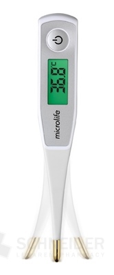 Sprint mit 10-Sekunden-Messung. Schnelles Digitalthermometer mit goldener flexibler Spitze, beleuchtetem Display, Fieberalarm, Tonsignalisierung und Speicher.