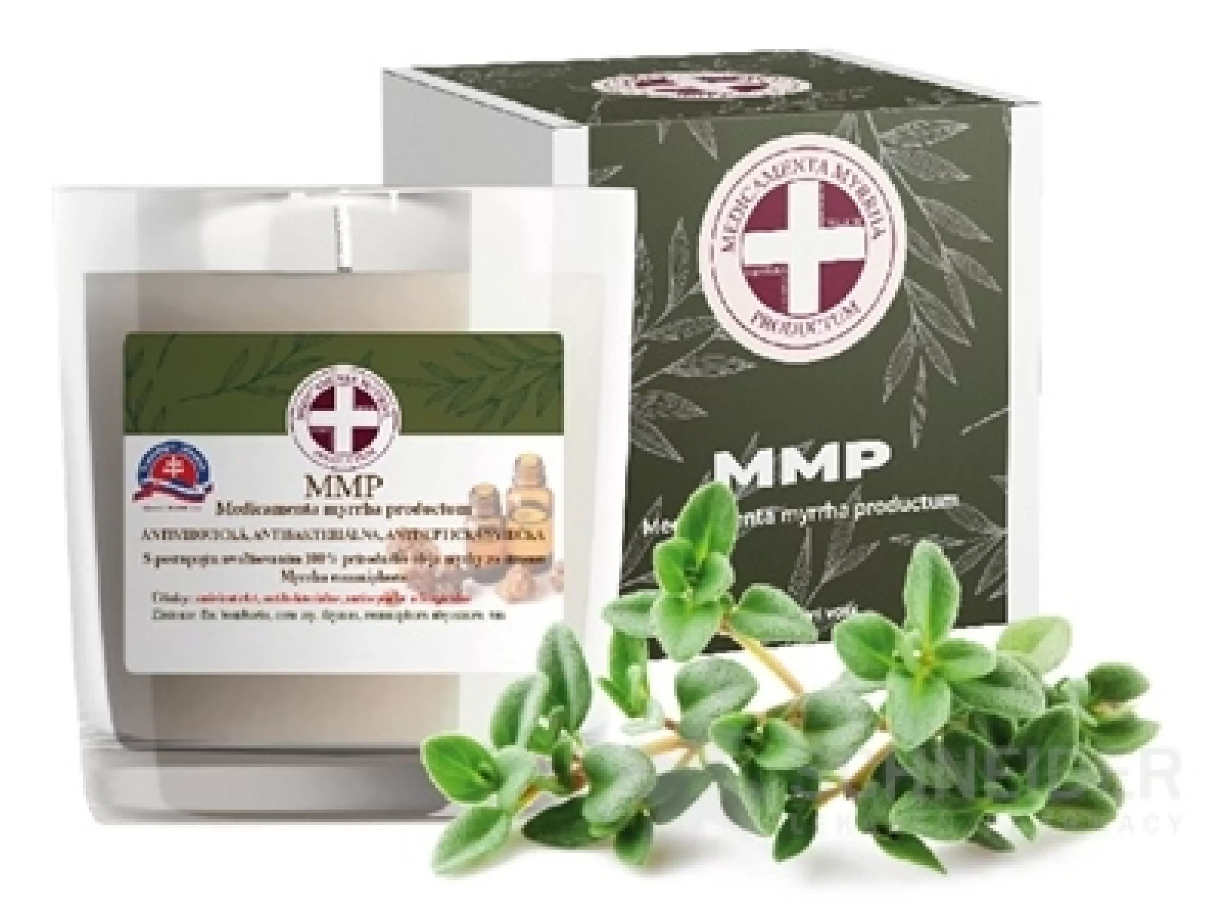 MMP-Kerze mit allmählicher Freisetzung von 100 % natürlichem Myrrhenöl und Thymianöl.