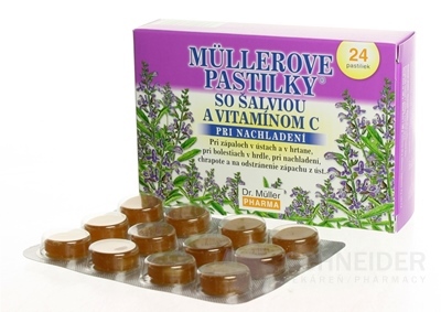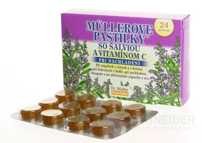 Müller Lutschpastillen® mit Salbei und anderen Kräuterextrakten. Der Gehalt an Honig und Vitamin C verbessert die Geschmackseigenschaften von Pastillen.