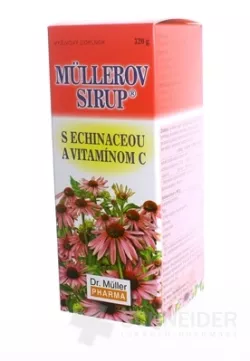 Nahrungsergänzungsmittel Müllers Sirup® mit Echinacea-Extrakt und Vitamin C. (in 1 Portion = 5 ml: Extrakt entsprechend getrocknetem Echinacea-Purpur 130 mg und Vitamin C 19,5 mg).
