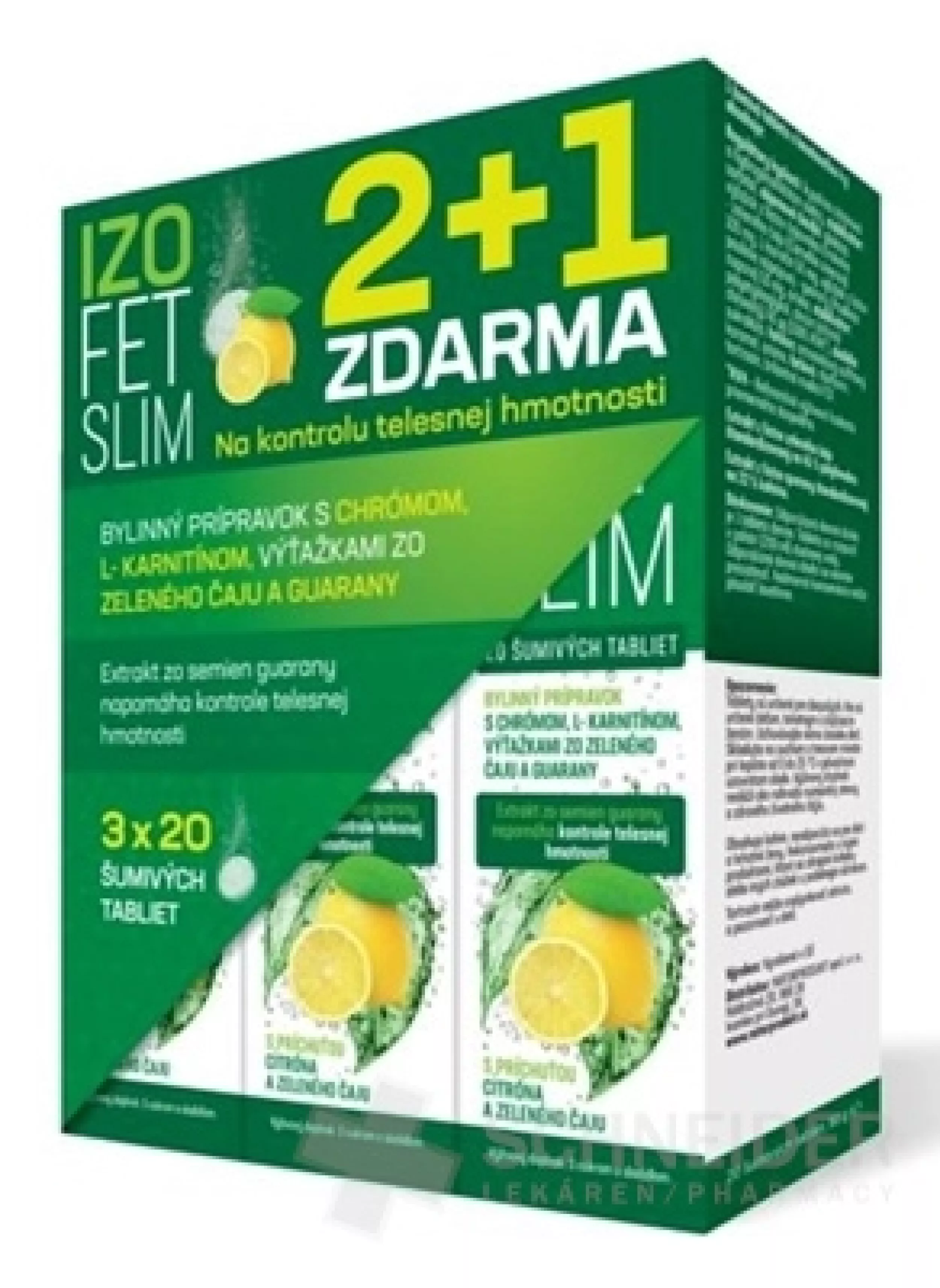Nahrungsergänzungsmittel, Kräuterpräparat mit Chrom, L-Carnitin, Extrakten aus grünem Tee und Guarana. Mit Zucker und Süßungsmitteln. Brausetabletten mit dem Geschmack von Zitrone und grünem Tee.