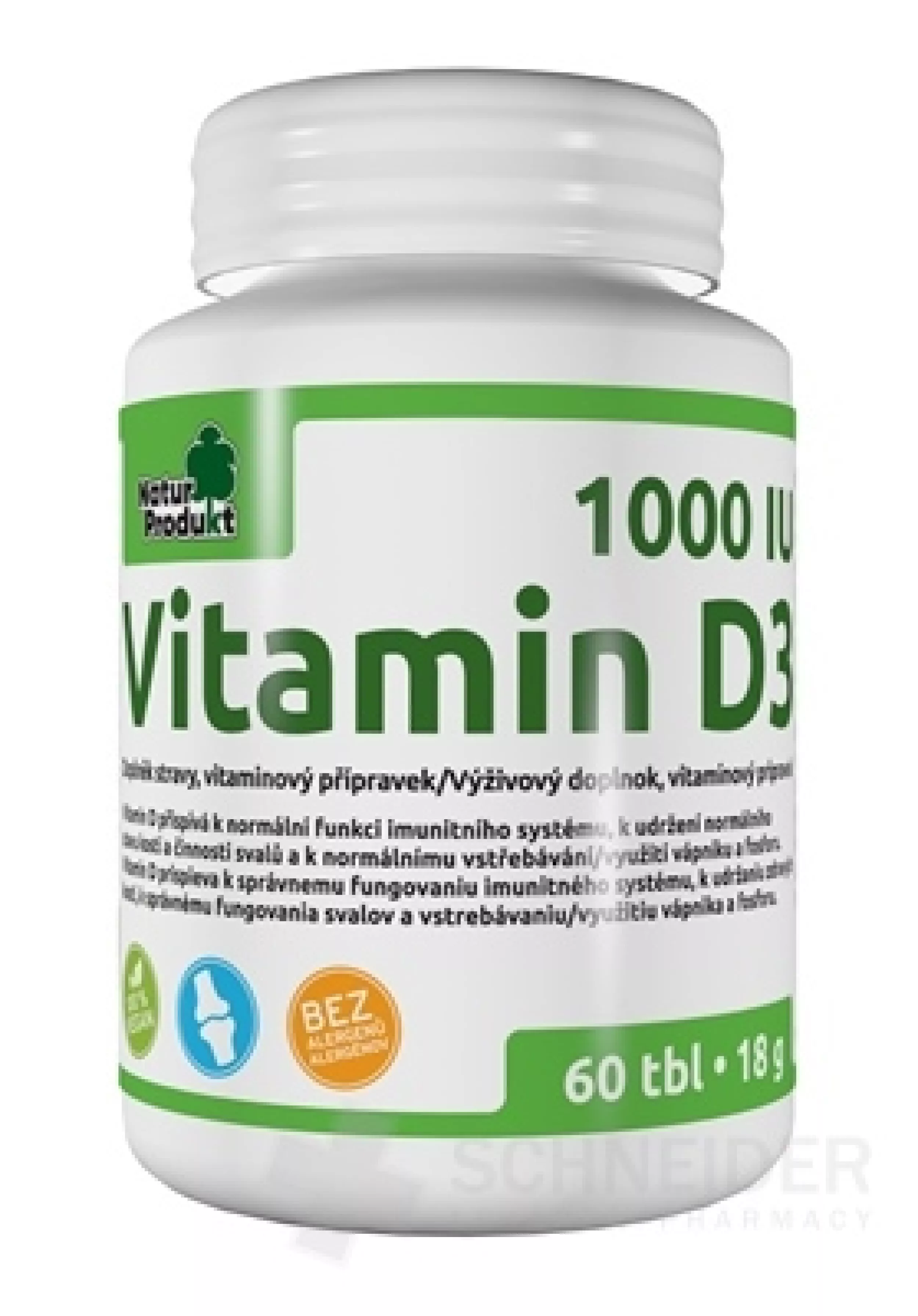 Nahrungsergänzungsmittel, Vitaminpräparat. Enthält Vitamin D3 1000 IE (Cholecalciferol) 25 µg (500 % RDA),