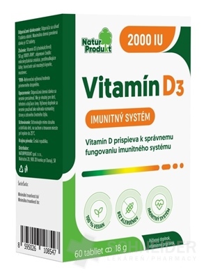 Zutaten pro Tablette: Vitamin D3 2000 IE (Cholecalciferol), Trägerstoff: mikrokristalline Cellulose, Trennmittel: Magnesiumsalze von Speisefettsäuren, Talkum. Mehr unter adc.sk