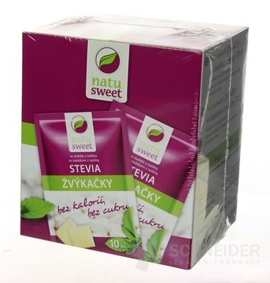 In der Packung sind 10 Beutel enthalten (1 Beutel = Gewicht 7,5 g, bzw. 10 Kaugummis)