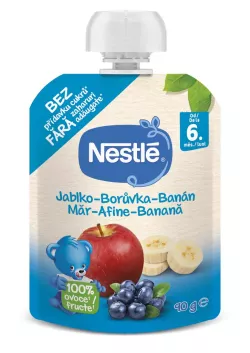 Babynahrung, Obstbeutel Apfel, Banane, Heidelbeere ist ein geeigneter Snack für Kinder ab 6 Monaten. Püree mit dem Geschmack saisonaler Früchte im praktischen, wiederverschließbaren Behälter eignet sich nicht nur für unterwegs.